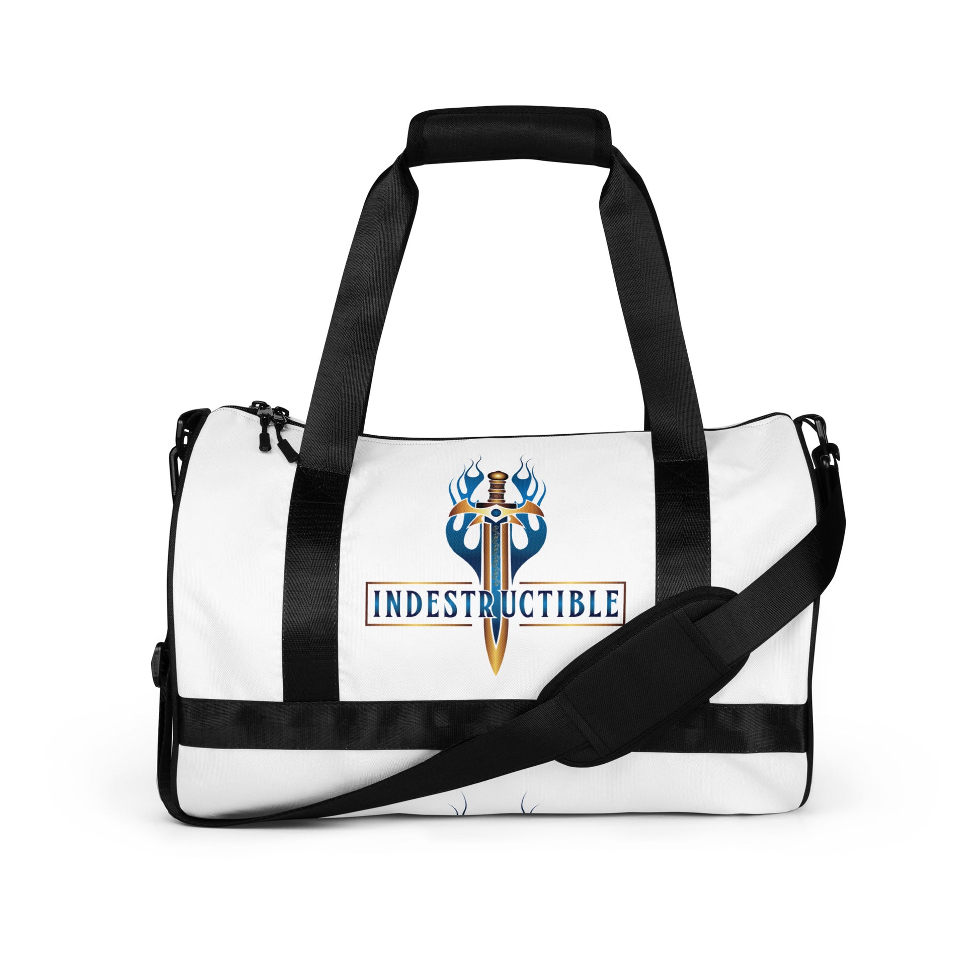Ready to get your fitness on? Add some punch to pumping iron with this all-over print gym bag. Made from 100% polyester and sturdy, water-resistant fabric, this bag is fun meets function. And it’s got pockets!